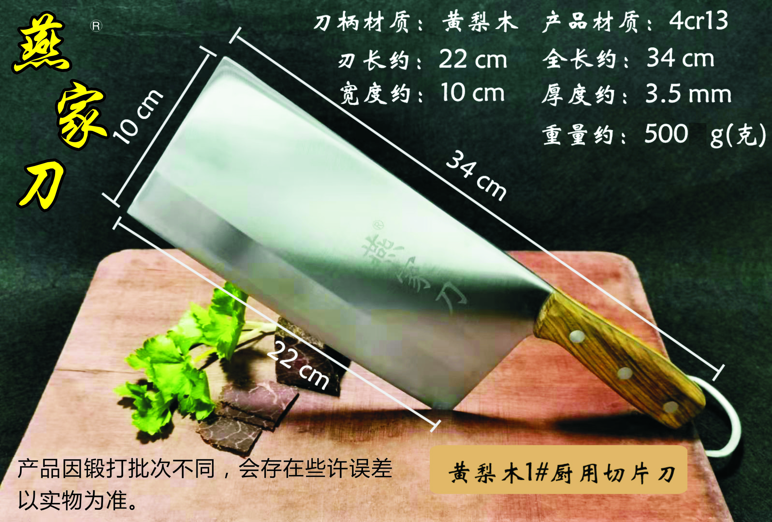 樂山燕家刀具有限公司(公司前身為燕佳鐵匠鋪),公司坐落于美麗的佛都之鄉樂山嘉州,在全國各地有上千家代理經銷點,公司專業銷售、設計、制作各類刀具。秉承一貫鍛造三精要求,即選料精、用料精、工藝精。所選材料全部產自滇東鐵礦優產區。本品牌刀具堅持千挑萬選為材,千錘百煉為刀的手工鍛造工藝宗旨。具有鋒利耐磨、持久耐用,用料上乘,硬度高、韌度強的特點!